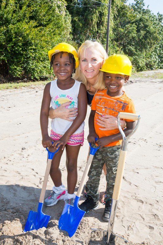 Four year olds wearing hard hats shovelled dirt alongside Palm Beach philanthropists to officially open construction on the new Opportunity Early Childhood Education & Family Center. The rest of the preschoolers, watched and cheered from across the street during the groundbreaking ceremony on Thursday, January 19.